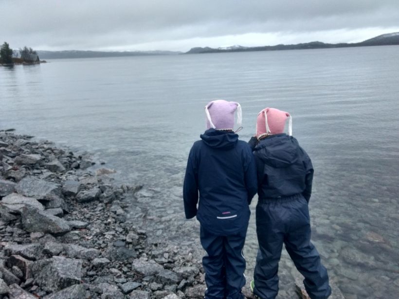 Bildetekst: Langfjellaseminaret 2018: Noen av deltakerne: Alf Waaler, Siri Wølneberg Bøthun, Frode Sundnes og Hege Skalleberg Gjerde ser på fangstanlegg ved Svoi med hver sine blikk. De deler inntrykk, fag og erfaringer.